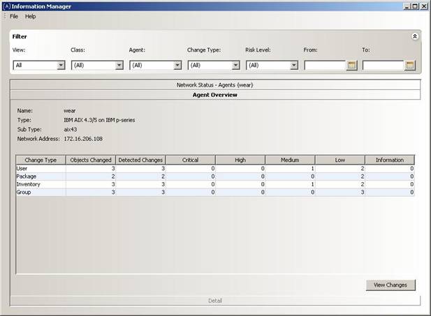 This screen gives overview information about the selected agent.