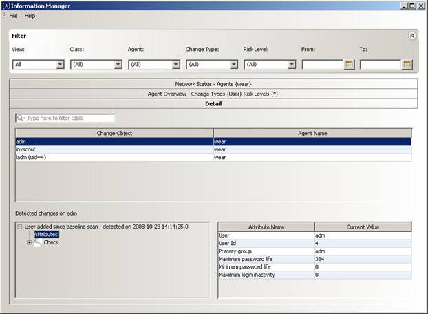 Detection view in Assuria Information Manager