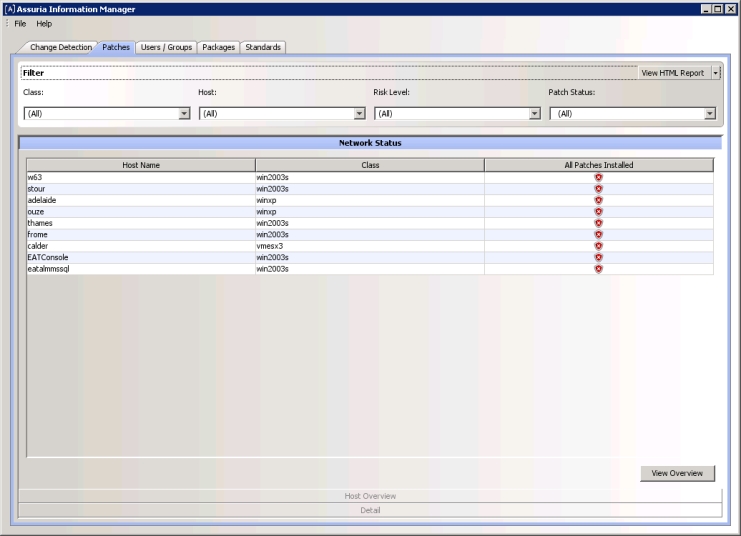 ‘Class’, 'Host', 'Risk level' and ‘Patch Status’. This provides an overview of each