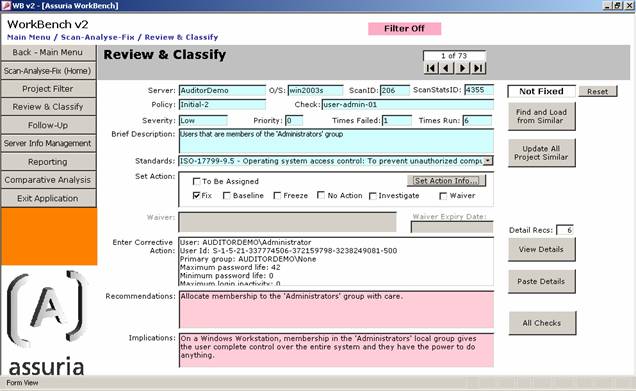 review, judge and assign appropriate actions to each of the Assuria Auditor